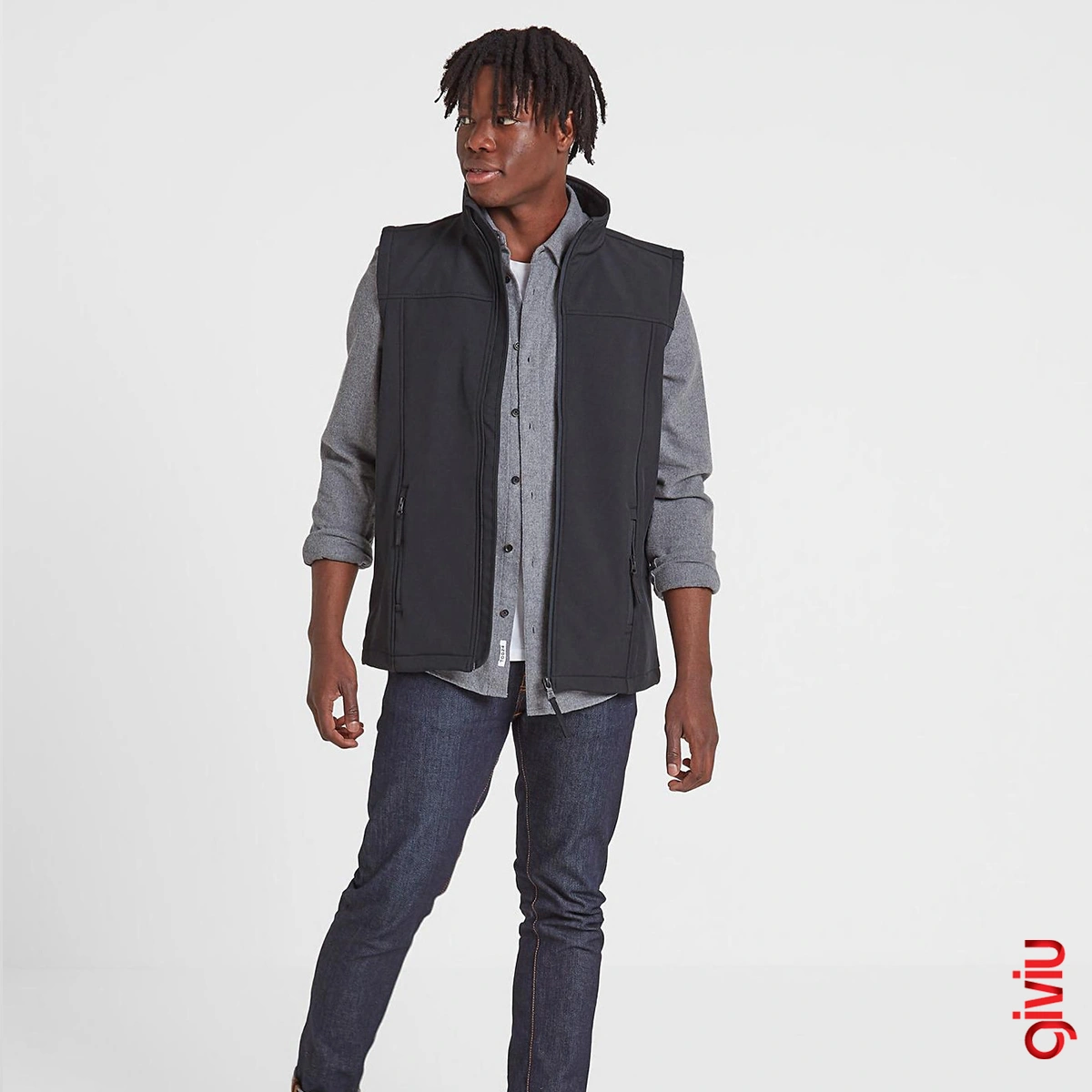 Lightweight / two-sided soft vest made of grid-resistant / highly breathable material.