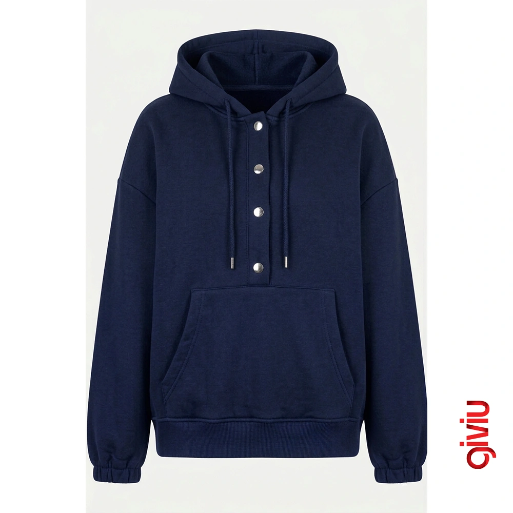 GIVIU Snap series combines the classic hooded sweatshirt design with functional metal snaps, adding an industrial aesthetic to your style. This model, which is a candidate to be the wildest piece in your wardrobe, stands out with its protective structure and striking details.