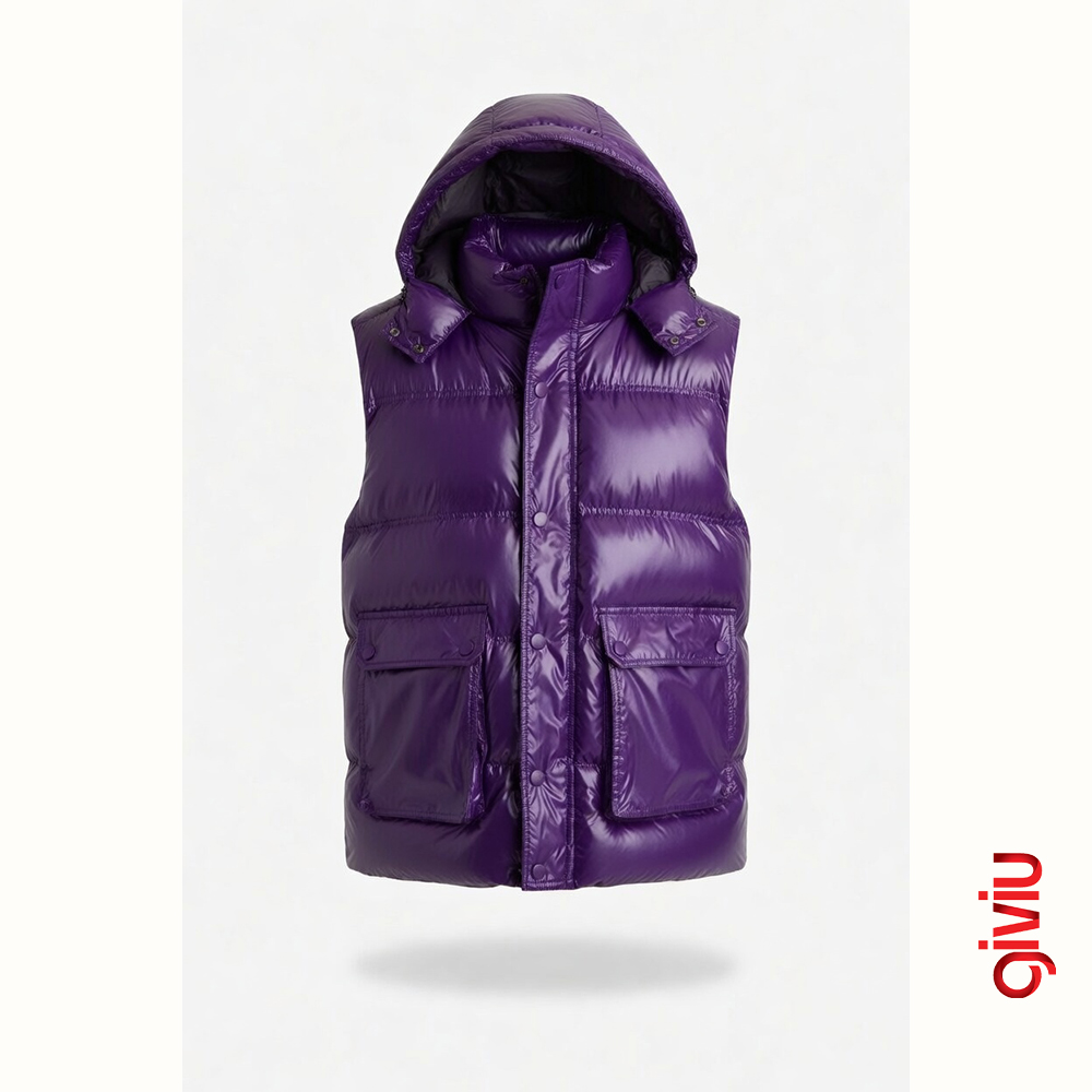 Moss Parlak Mor Kapüşonlu Şişme Yelek