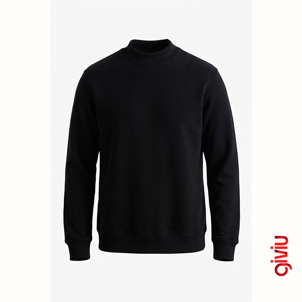 GIVIU Midnight Sweatshirt, iş dünyasının ciddiyetini ve modern tasarımın konforunu bir araya getiren özel bir parçadır. Derin siyah rengi ve minimalist yarım balıkçı yaka (mock neck) tasarımıyla, hem sahada hem de yönetim kademesinde kusursuz bir profesyonel görünüm sunar. Bu model, standart sweatshirt tasarımlarının ötesine geçerek markanıza prestijli bir kimlik kazandırır.